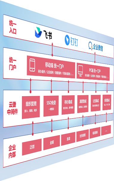 对协作平台提供支持服务,,支持企业应用与协作平台对接,,,包含组织同步、、、、消息集成、、、、待办集成等。。支持目前主流的协作平台:钉钉、、、、企微和飞书。。。。